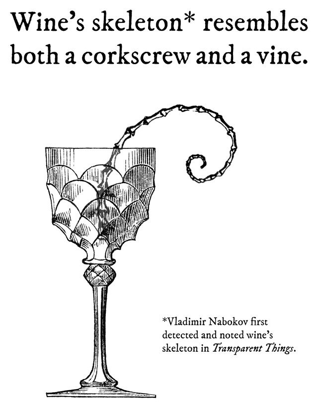 From Prof. Oddfellow's sketchbook: "Wine's skeleton resembles both a corkscrew and a vine." For more eccentricities, see our collection of "Forgotten Wisdom."