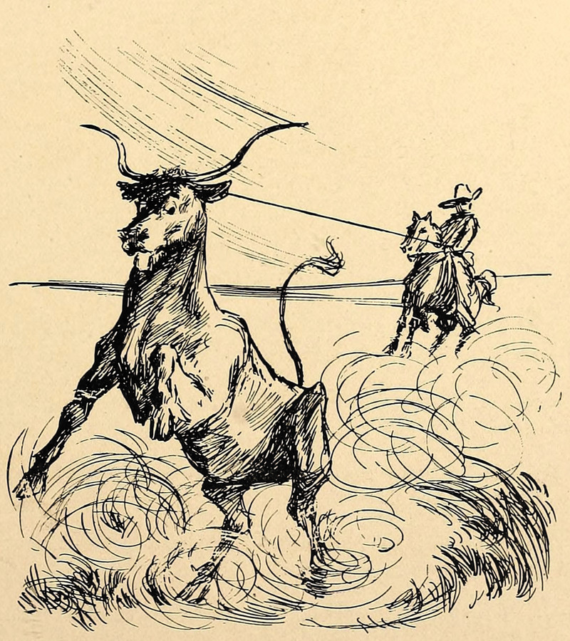 #vintage illustration #vintage yearbook #yearbook #bull #cowboy #animal wrangler