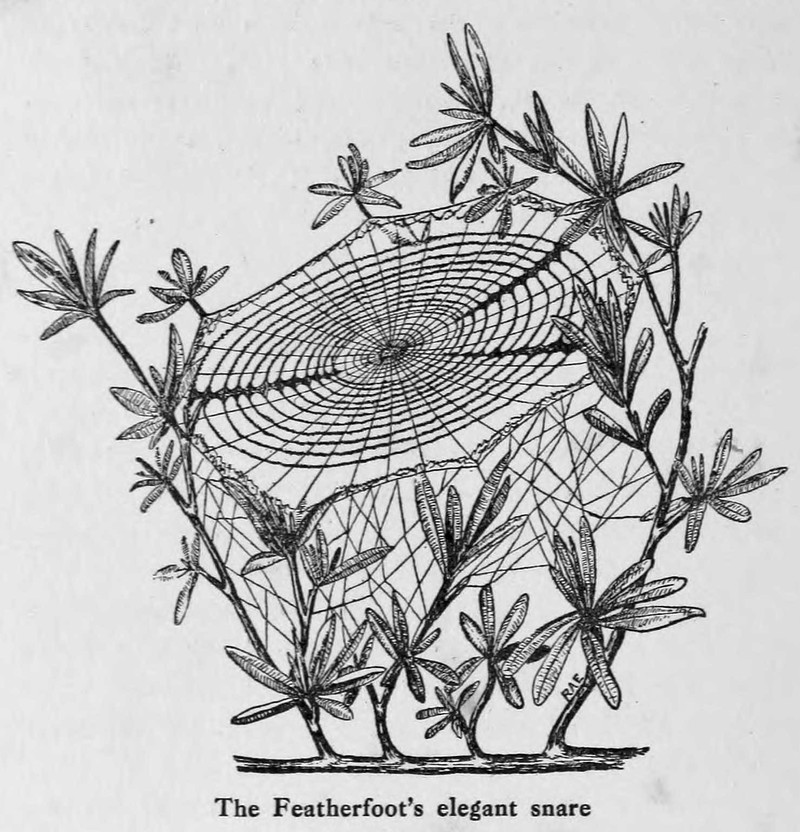 The featherfoot spider's elegant snare.  From the rare Spiderland by R. A. Ellis, 1912.