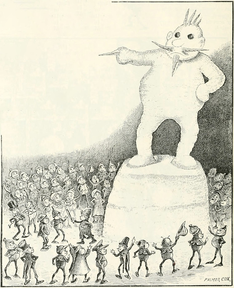 #vintage illustration #snowman #elves #brownies