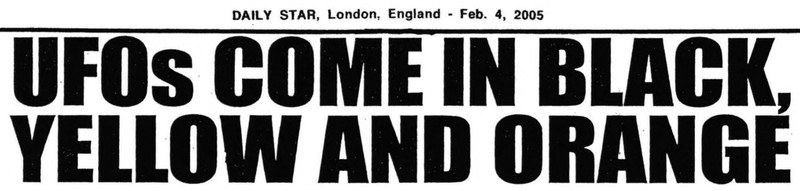 "UFOs come in black, yellow and orange."  Via UFO Newsclipping Service, 2005.