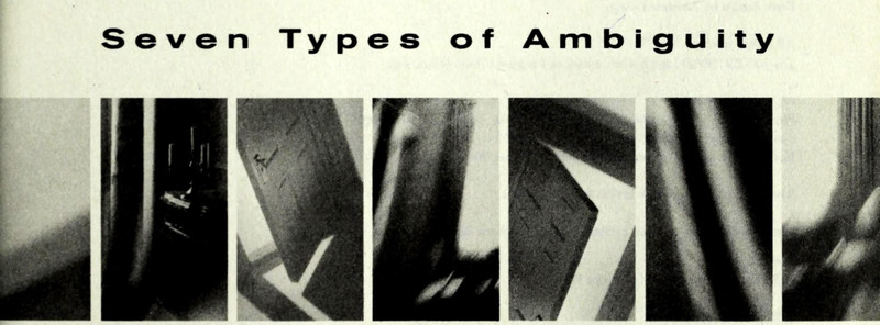 There may very well be seven types of ambiguity, but damned if they're not all a blur.  From Seven Types of Ambiguity by Elliot Perlman.