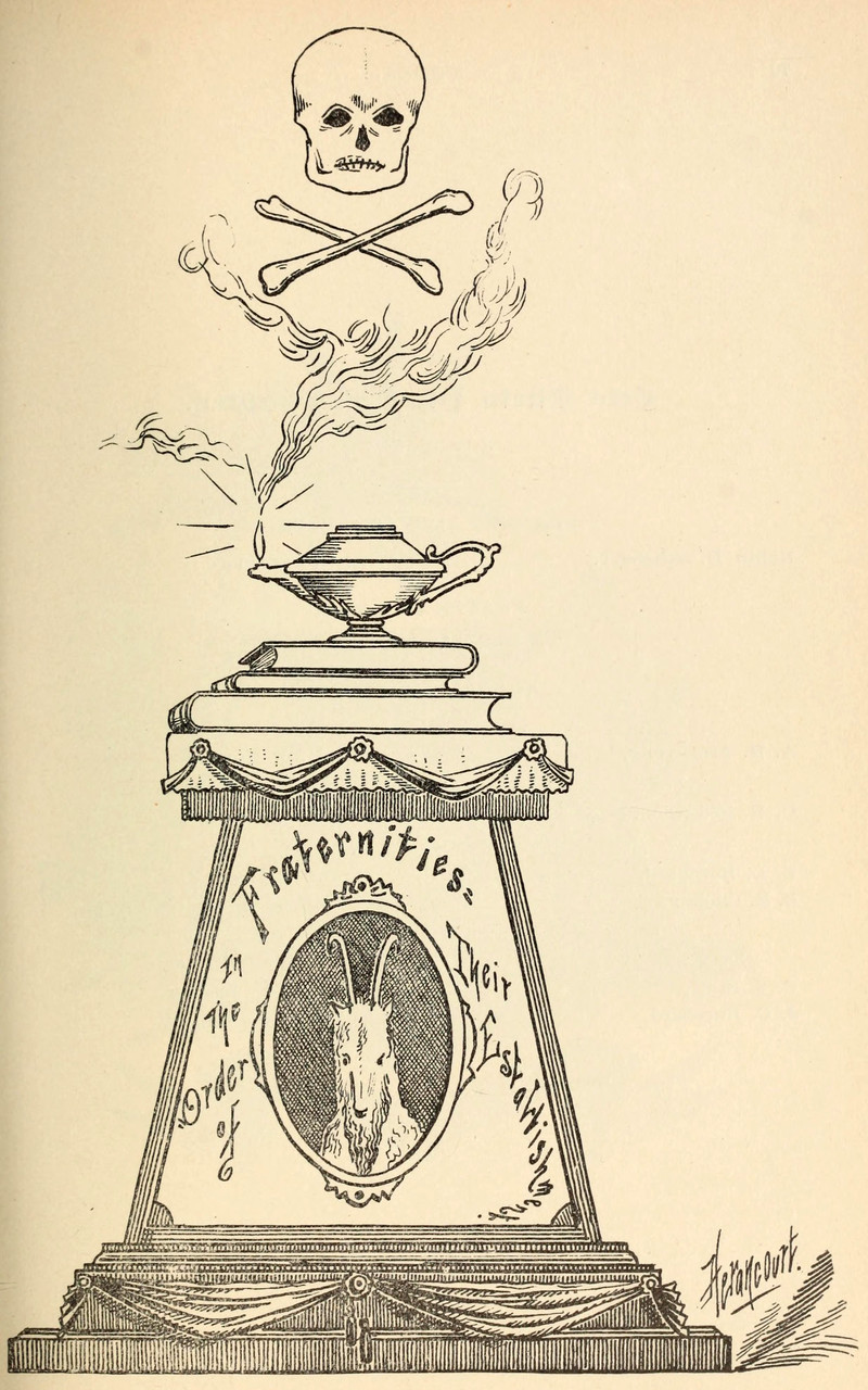 #vintage illustration #goat #fraternity #vintage yearbook #yearbook #skull and bones #secret society