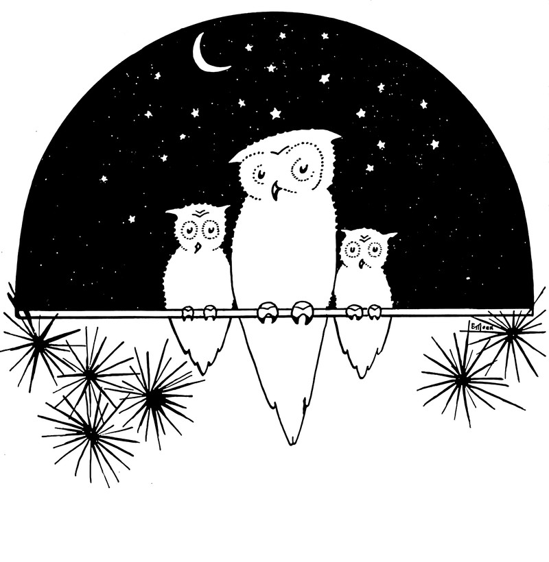 #vintage illustration #owl #vintage yearbook #yearbook #starry night
