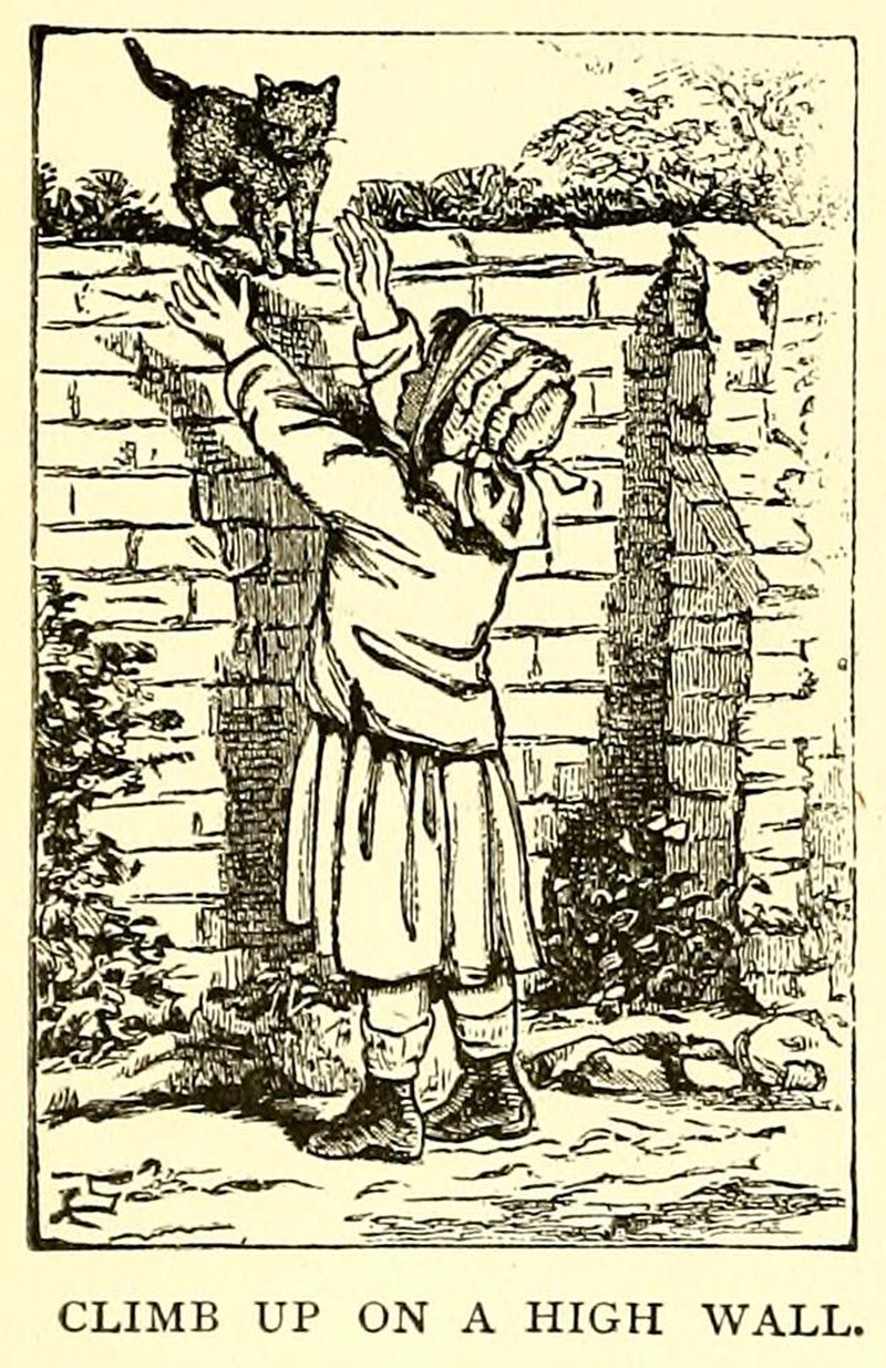"Climb up on a high wall."  From The Cats' Arabian Nights by Abby Morton Diaz, 1881.