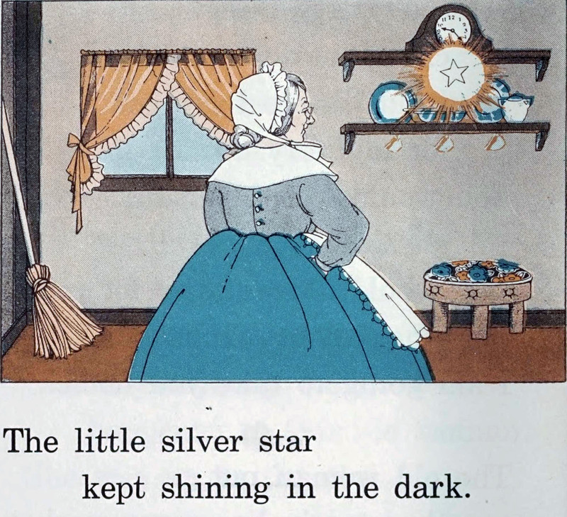 "The little silver star kept shining in the dark."  From The Little Story House by Miriam Mason, 1935.