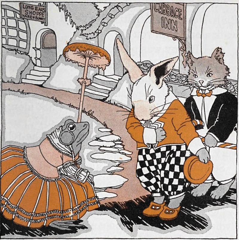 #vintage illustration #anthropomorphism #frog #rabbit #illustration