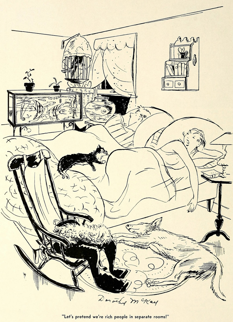 "Let's pretend we're rich people in separate rooms!"  From Purple Parrot, 1934.