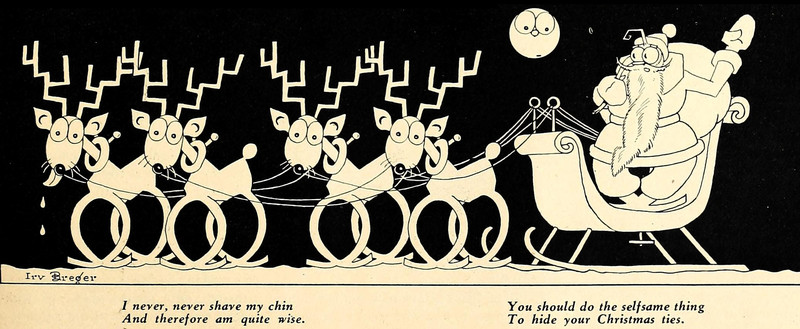 Revealed -- Santa's beard is to hide a tacky Christmas necktie.  From Purple Parrot, 1929.