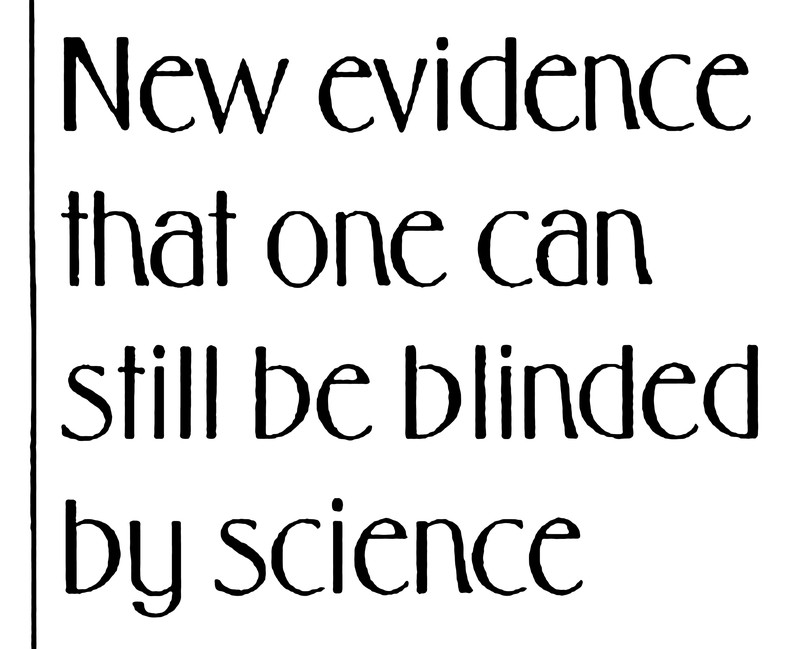 "New evidence that one can still be blinded by science."  From Woroni, 1996.