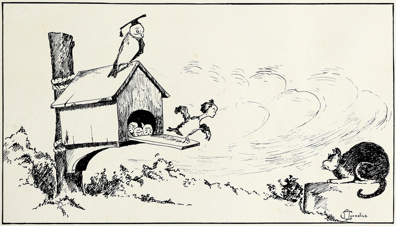 #vintage illustration #cat #harpy #vintage yearbook #yearbook #human headed #birdhouse
