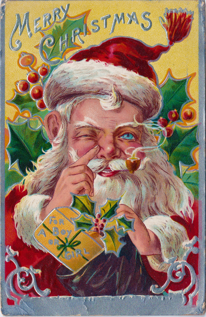 #vintage illustration #vintage christmas #christmas #santa #wink #vintage postcard #postcard