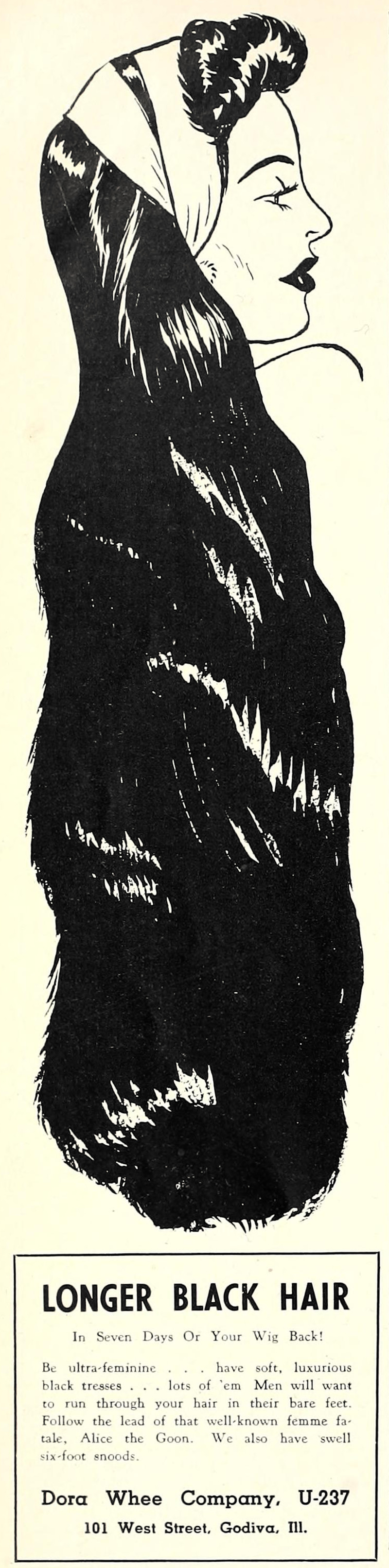 "Men will want to run through your hair in their bare feet."  A spoof ad from Purple Parrot, 1946.