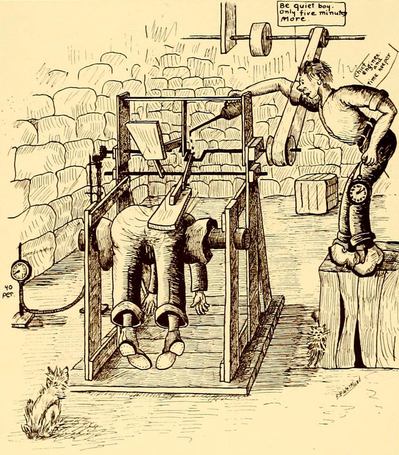 #vintage illustration #dungeon #vintage yearbook #yearbook #hazing #spanking