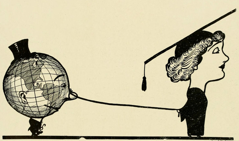 #vintage illustration #earth #anthropomorphism #vintage yearbook #yearbook #faces in things #pet walker #leash
