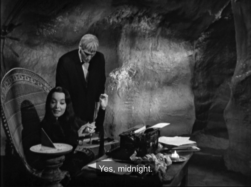 A sundial in a cave showing midnight.  From The Addams Family, 1965.