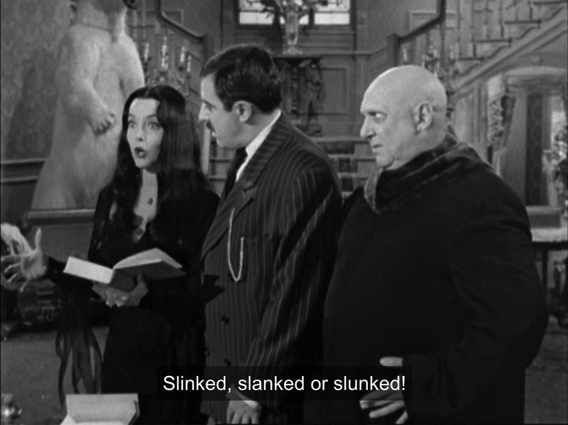 "Slinked, slanked, or slunked!"  From The Addams Family, 1965.