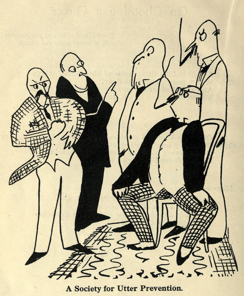 "A Society for Utter Prevention." From Dressing Gowns and Glue by L. de G. Sieveking and illustrated by John Nash, 1920.