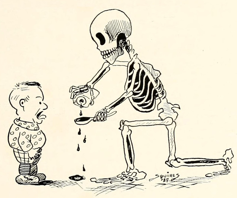 #vintage illustration #skeleton #poison #vintage yearbook #yearbook #1920s #medicine