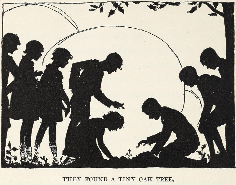 "They found a tiny oak tree."  From Elementary Science by Grades Book Three by Ellis Persing and Elizabeth Peeples, 1928.