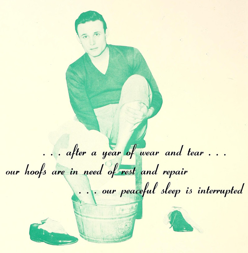 "After a year of wear and tear ... our hoofs are in need of rest and repair ... our peaceful sleep is interrupted."  From Lenoir Rhyne's 1952 yearbook.