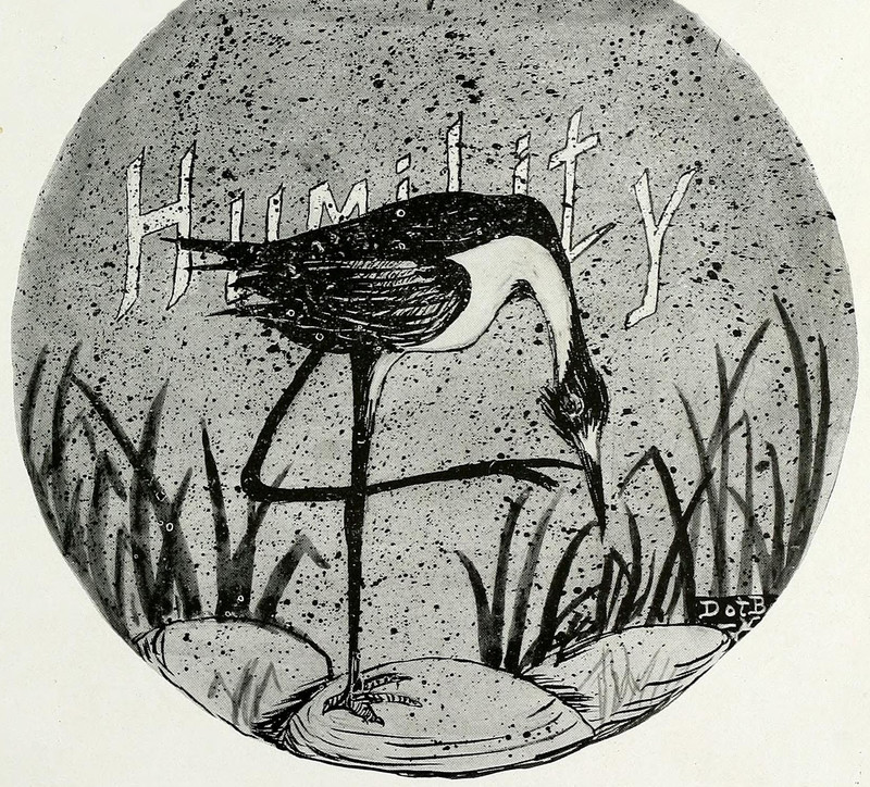 #vintage illustration #vintage yearbook #yearbook #bird #standing on one foot #humility