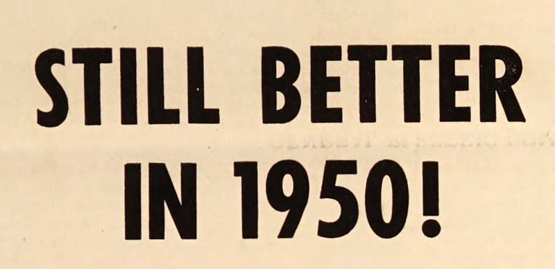 We fact-checked this, and it's true -- it's "still better in 1950." Intriguingly, this headline came out in 1949, and we applaud the time-bending. From Fort Wayne Works News, 1949.
