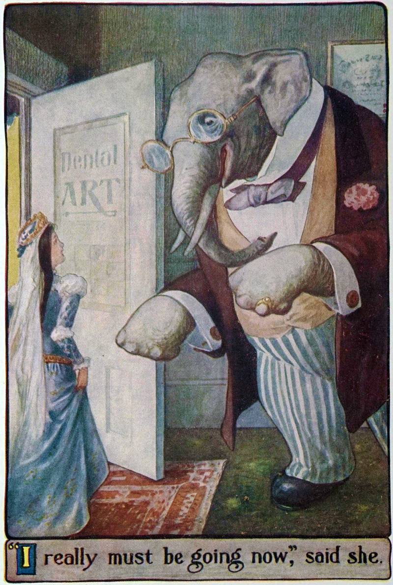 #vintage illustration #anthropomorphism #elephant #dentist
