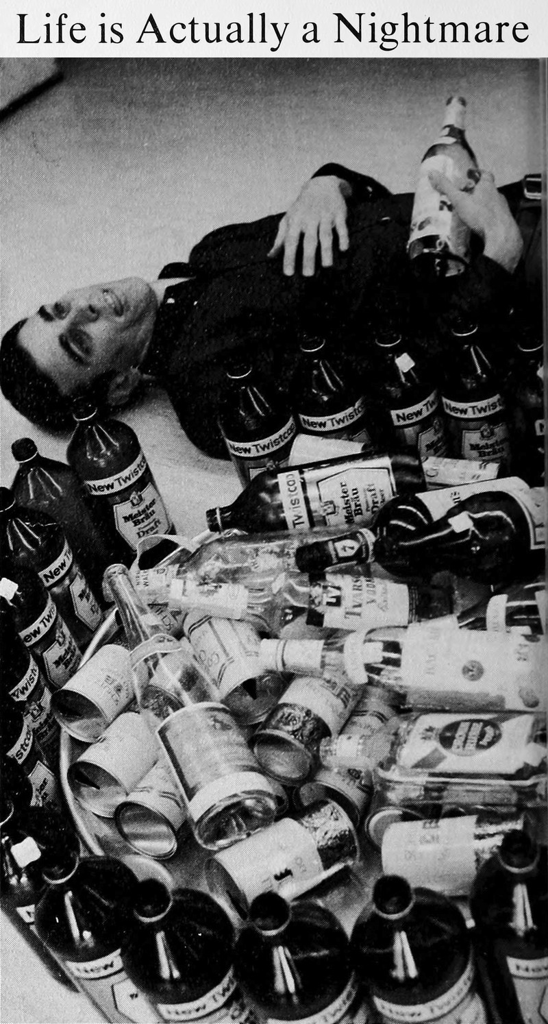 #nightmare #beer #vintage yearbook #alcohol #vintage headline #1970s #vintage man #coping strategies