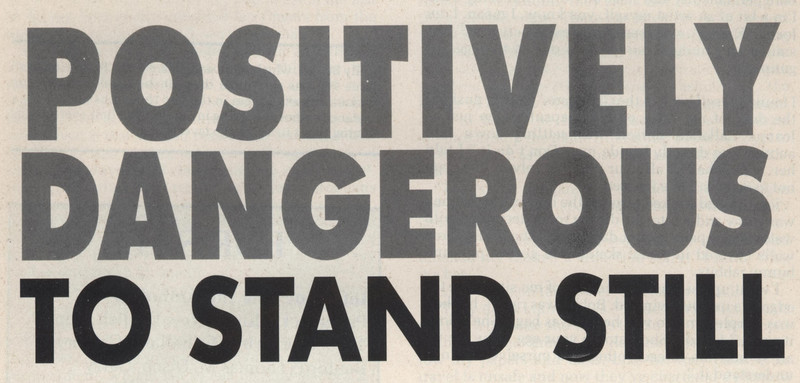 "Positively dangerous to stand still."  From Interzone, 1994.