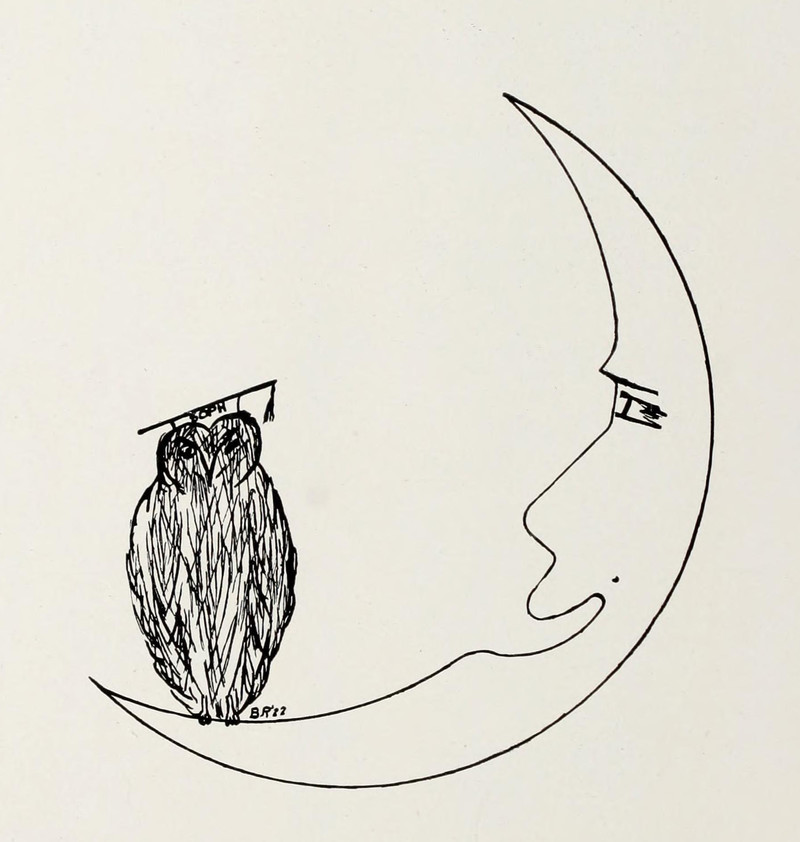 #vintage illustration #owl #man in the moon #vintage yearbook #yearbook #faces in things