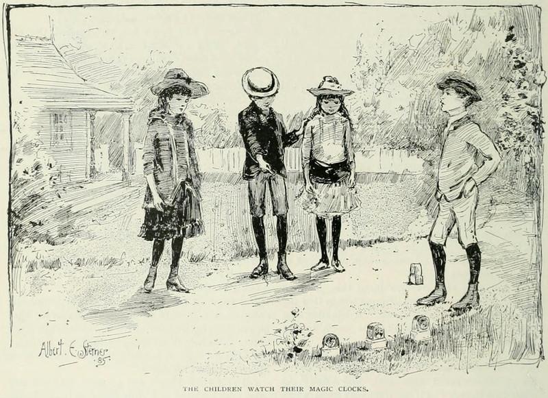 Watching their magic clocks.  From St. Nicholas, 1885.