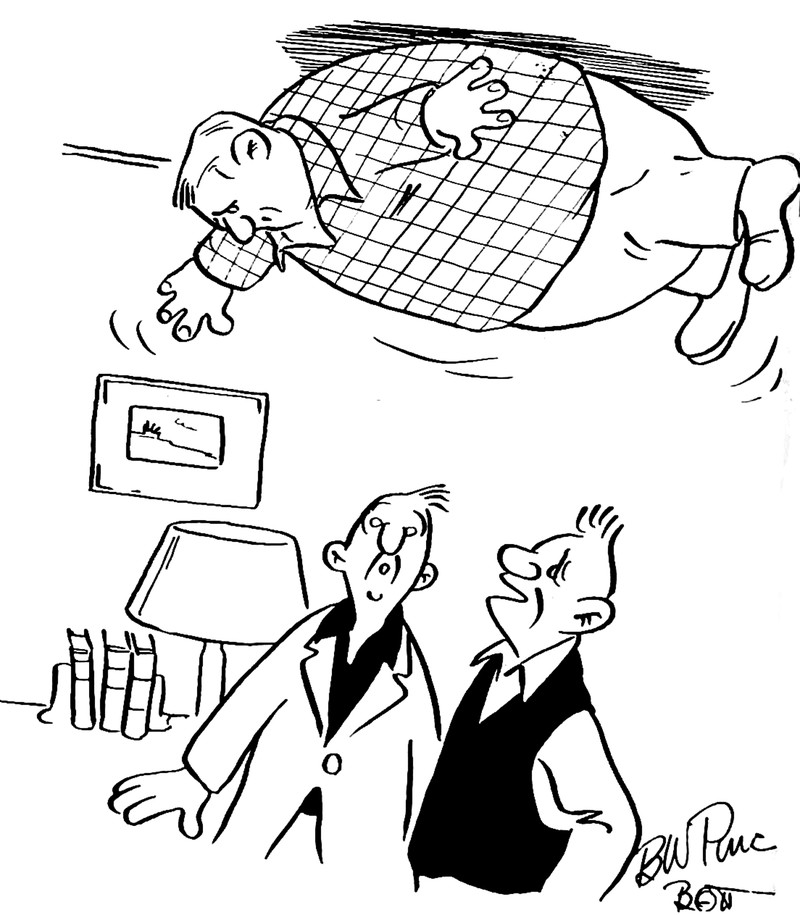 #vintage illustration #weightless #fat man #on the ceiling
