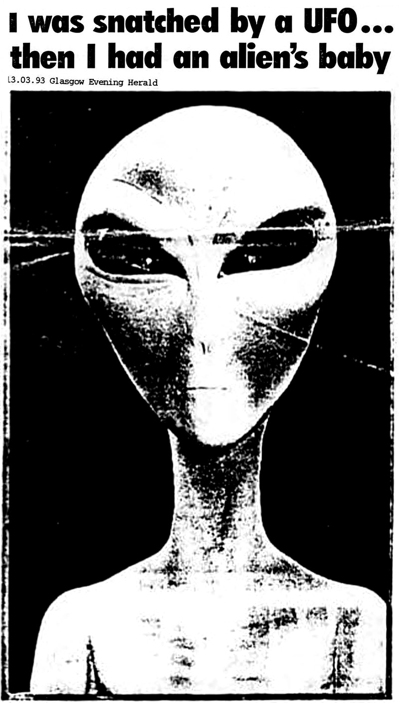"I was snatched by a UFO ... then I had an alien's baby."  Via BUFORA Newsfile, 1993.