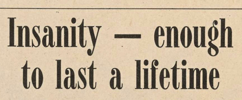 "Insanity -- enough to last a lifetime."  From The Gateway, 1969.