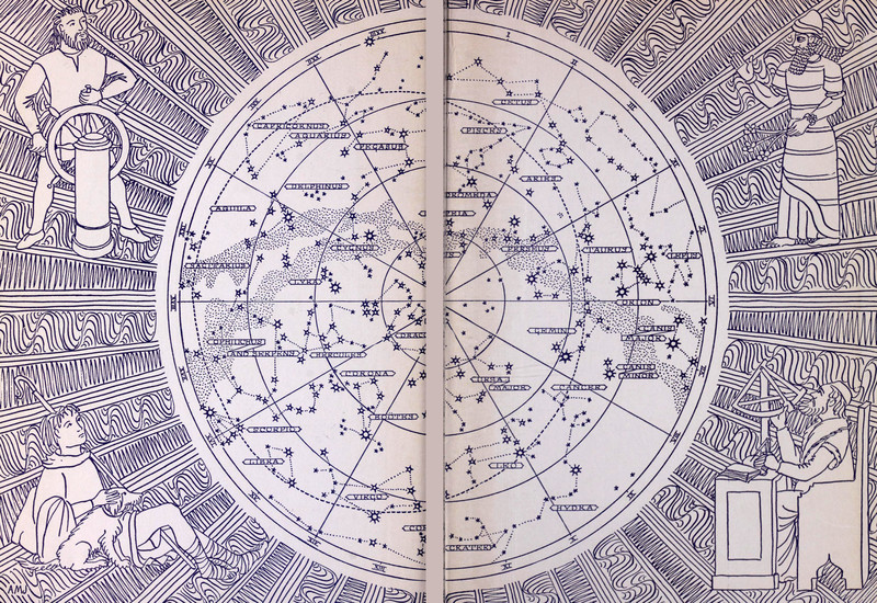 The endpapers from The Stars in Our Heaven, Myths and Fables by Peter Lum.
