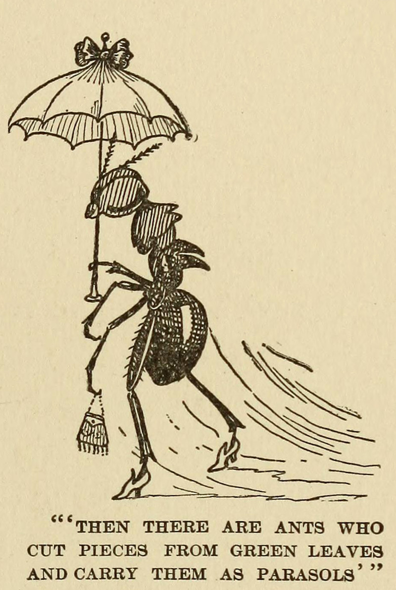 #vintage illustration #anthropomorphism #umbrella #parasol #ant #1910s