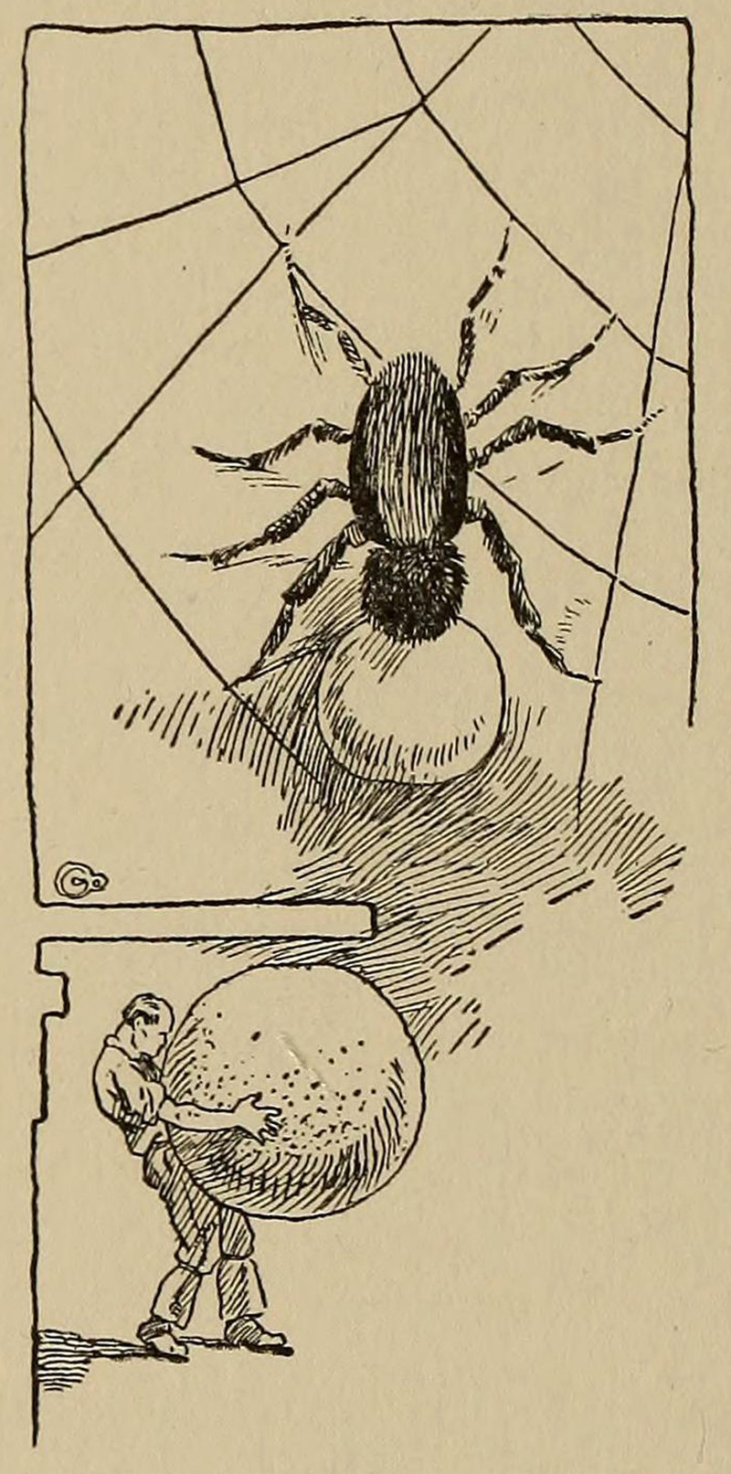 #vintage illustration #spider #tiny man