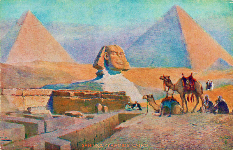 #vintage illustration #sphinx #egypt #pyramid #1920s #vintage postcard #postcard