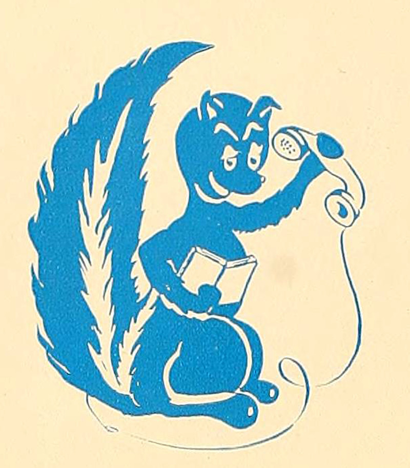 #vintage illustration #anthropomorphism #vintage yearbook #yearbook #1940s #illustration #skunk