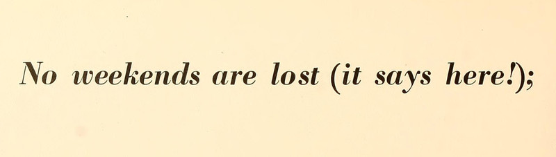 Great news: "No weekends are lost (it says here!)"  From Simmons College's 1947 yearbook.