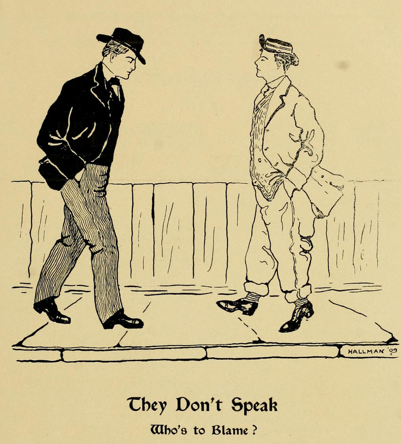 "They don't speak.  Who's to blame?"  From Bucknell University's 1908 yearbook.