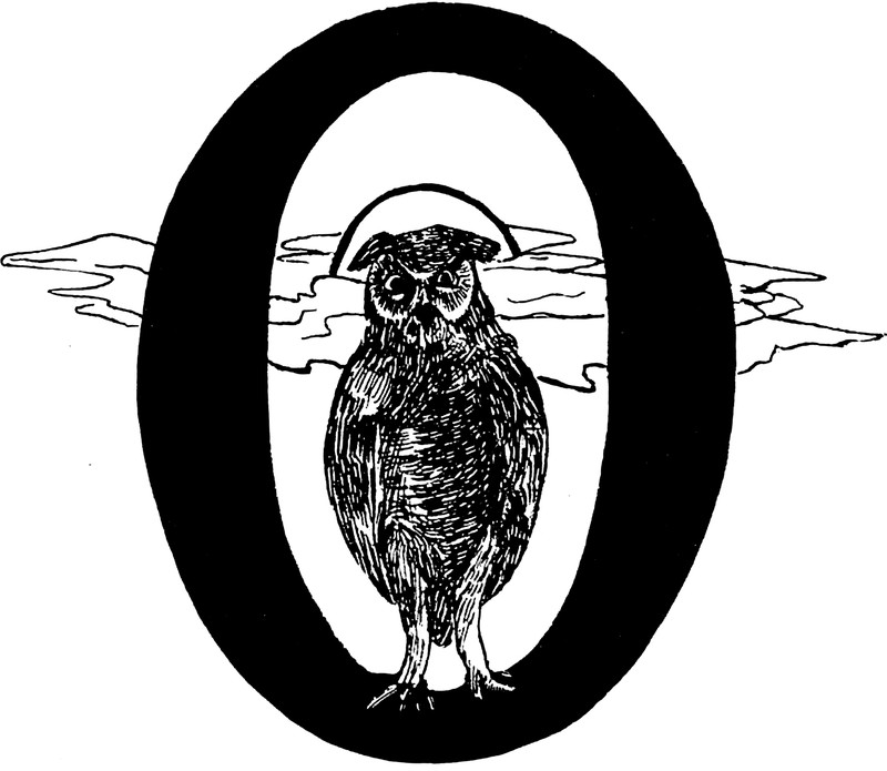#vintage illustration #owl #ornate capital #vintage yearbook #yearbook #letter o