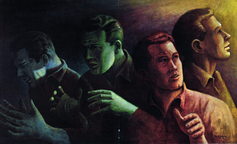 #vintage illustration #1960s #illustration #repentance #darkness and light #range of emotions