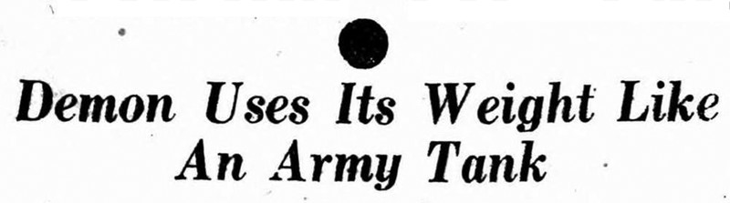 "Demon uses its weight like an Army tank."  From The Bombay Chronicle, 1950.