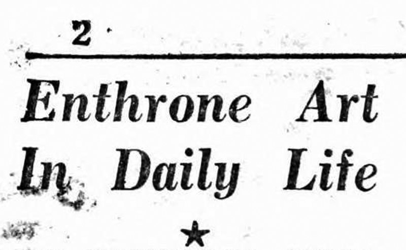 "Enthrone art in daily life."  From The Bombay Chronicle, 1950.