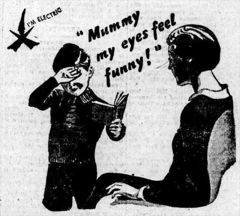 "Mummy my eyes feel funny!"  From The Bombay Chronicle, 1938.