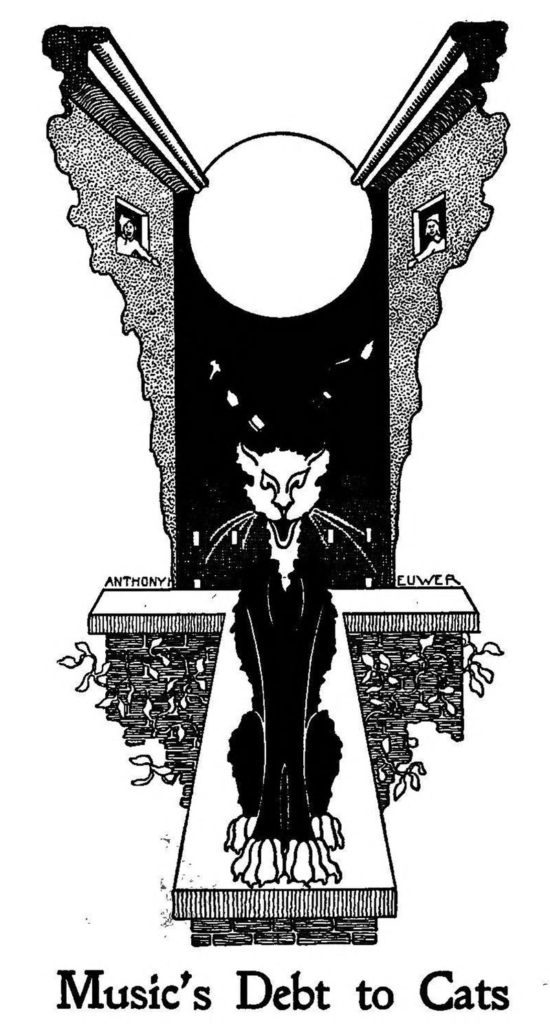 "Music's debt to cats."  From Christopher Cricket On Cats by Anthony Henderson Euwer, 1909.