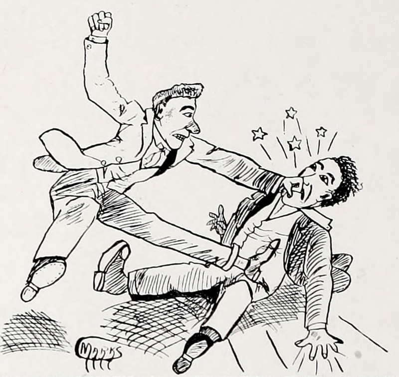 #vintage illustration #vintage yearbook #yearbook #seeing stars #fighting #men fighting
