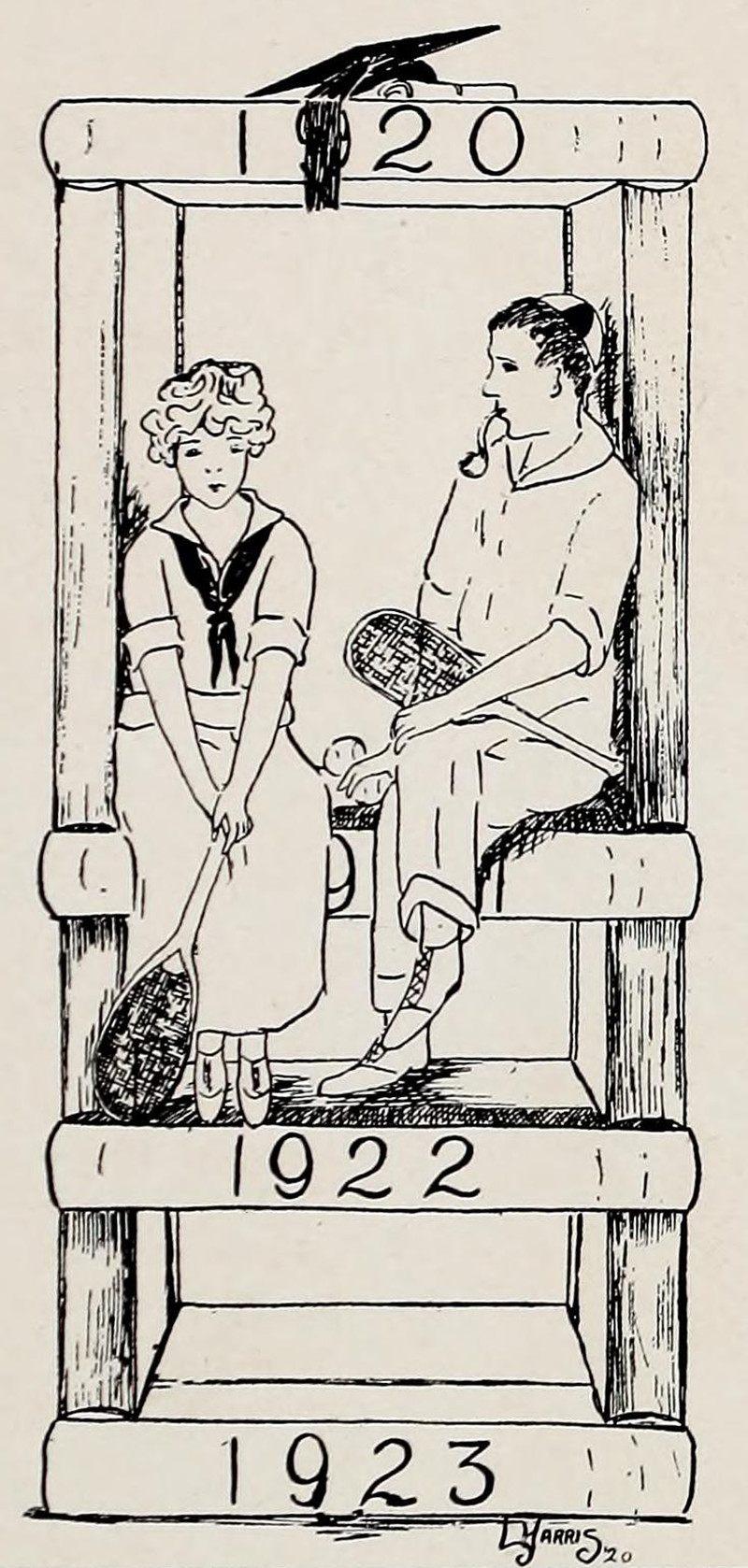 A structure built of books.  From Georgetown College's 1920 yearbook.